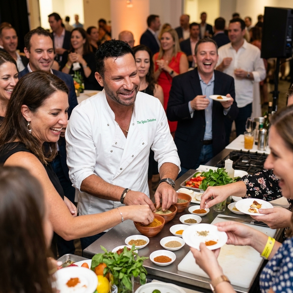 Guests get their hands spiced up as Chef Yaniv demos fun, easy dishes, followed by passing around samples on mini plates.